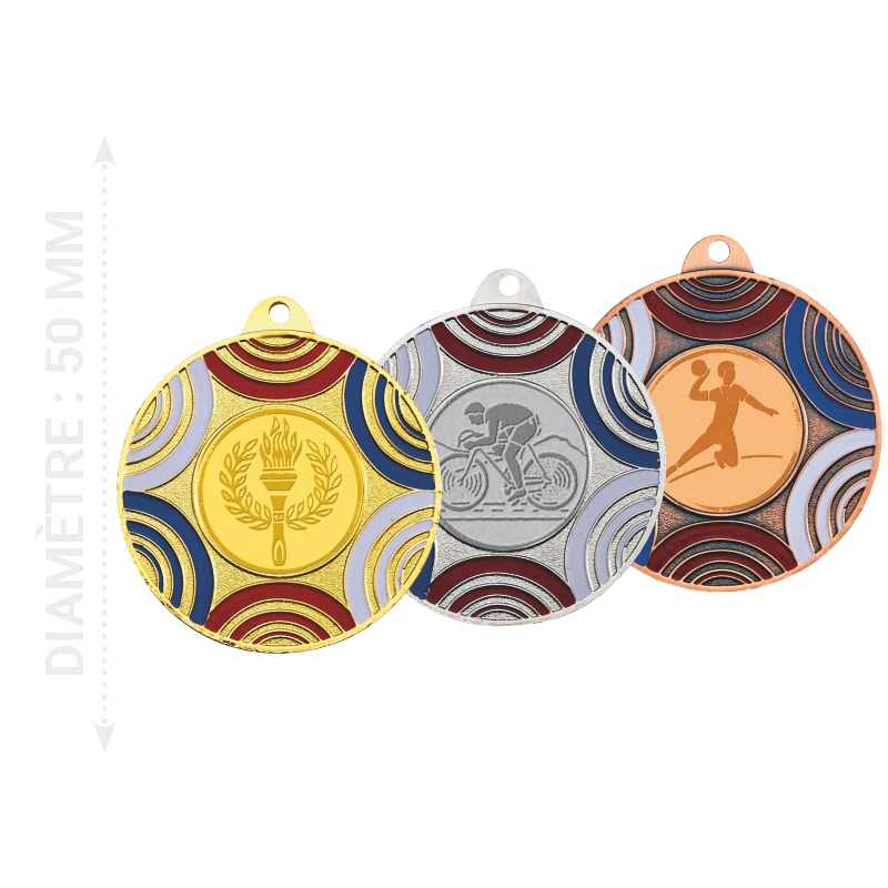 Ref.M5023R Médaille portecentre fer or/bleu/blanc/rouge diam. 50 mm